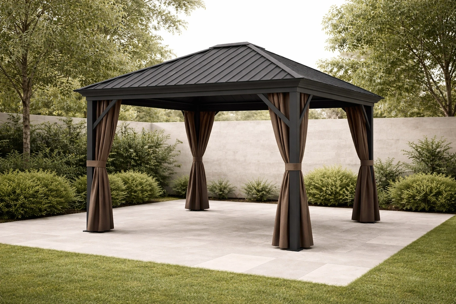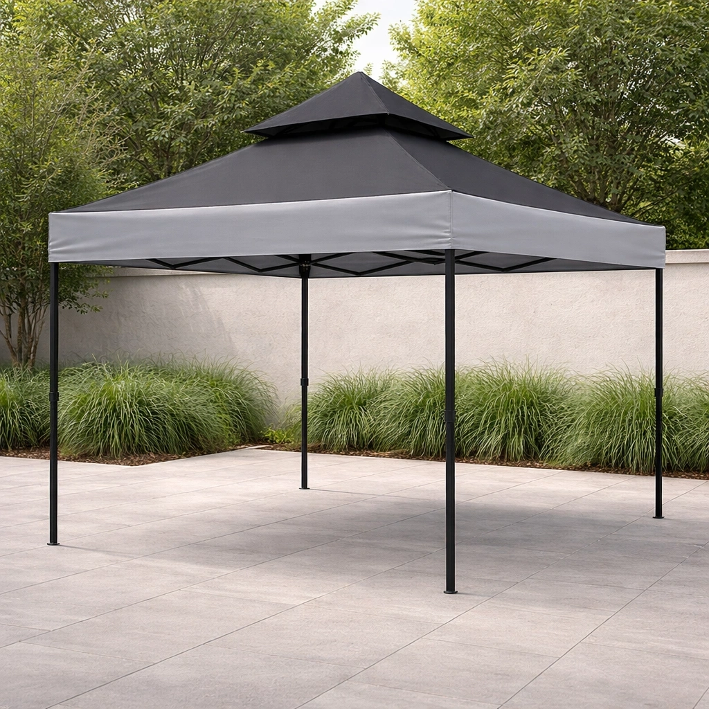 Carpa Plegable de poliéster con estructura de acero negro y gris