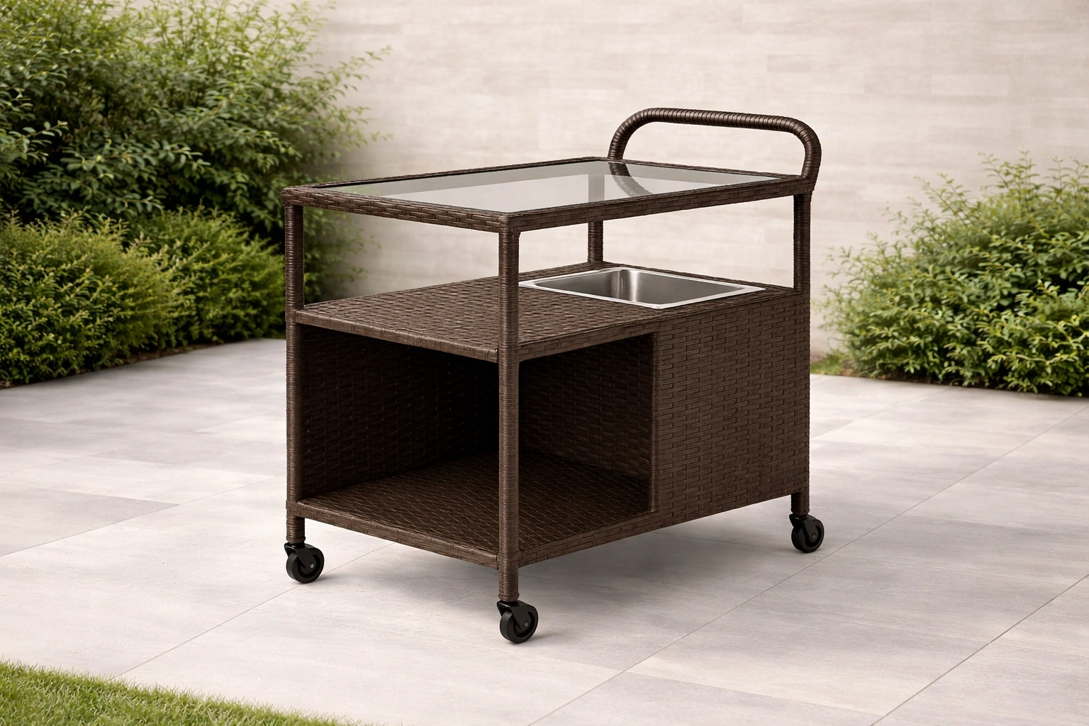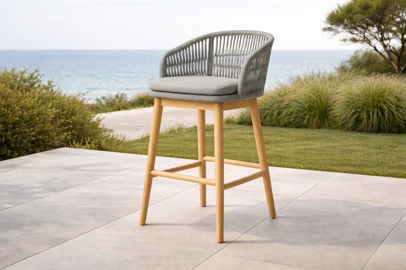 Conjunto de bar de aluminio y ratán gris 5 piezas
