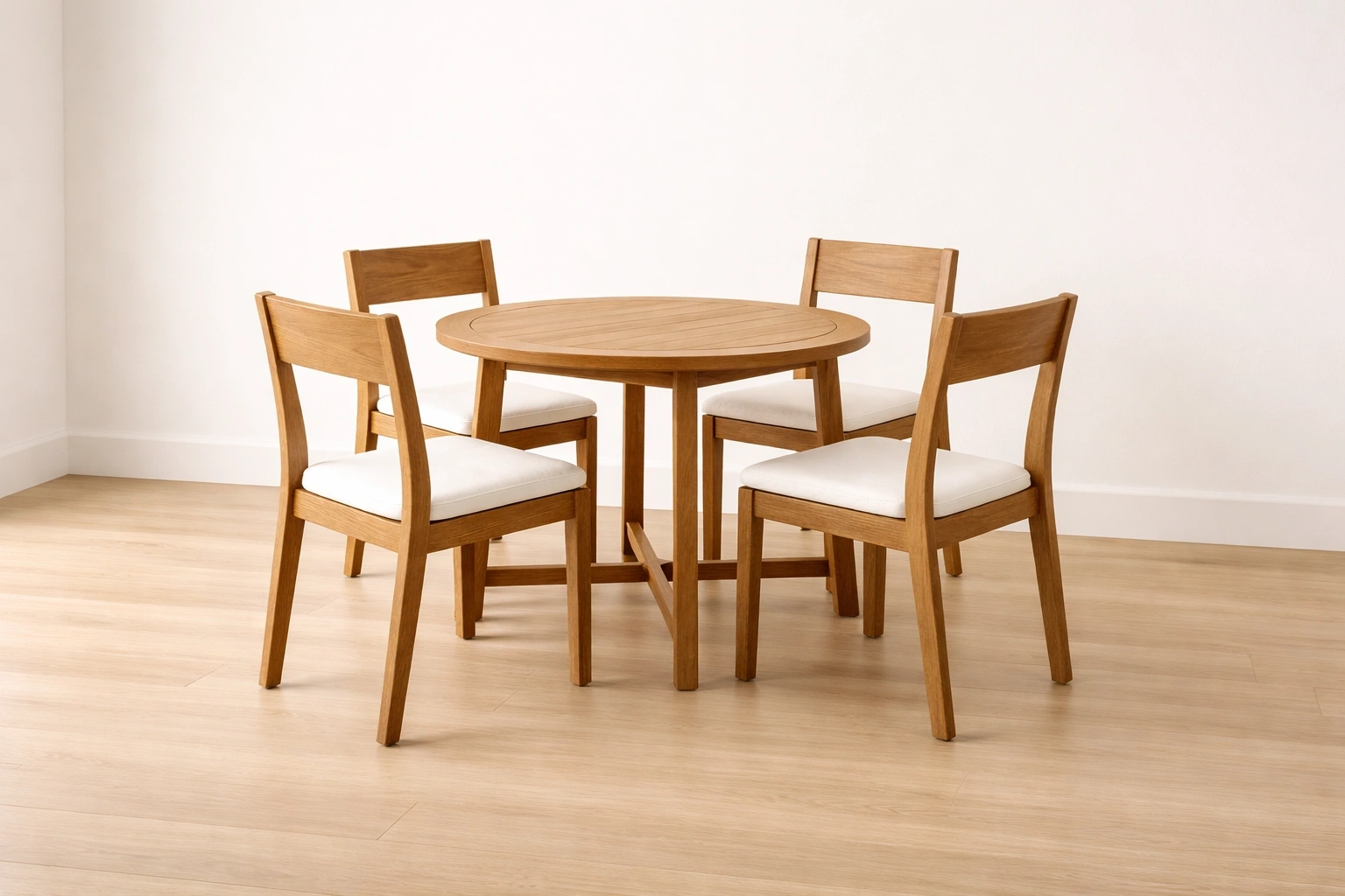 Conjunto de bar con mesa alta redonda y 4 sillas de aluminio blanco